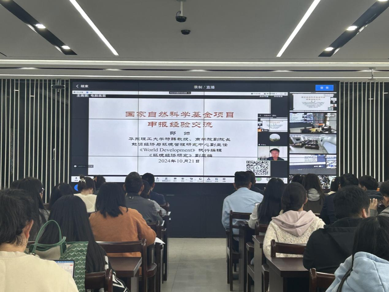 10月21日下午1点,我院邀请华东理工大学特聘教授、商学院副院长、能源经济与环境管理研究中心副主任、《World Development》执行编辑、《环境经济研究》副主编邵帅教授做“国家自然科学基金项目申报经验交流”的主题讲座。本次讲座由财经学院副院长李宝礼主持,财经学院党政领导、学院教师、研究生等参与本次讲座。