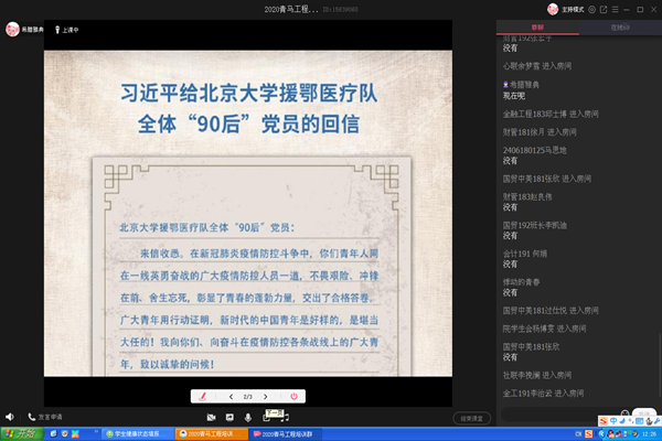 财经学院举办2020年青马工程开班典礼暨“共抗疫情、爱国力行”主题团课