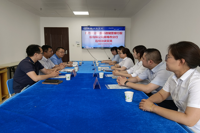 5月29日下午,中国邮政储蓄银行股份有限公司蚌埠市分行运营管理部总经理李学艳等一行来访财经学院,就进一步深化银校合作、谋求共赢发展进行洽谈交流。财经学院党委书记杜小明、副院长李宝礼、就业联系人朱中军等参加交流会。会议由学院党委副书记、纪委书记耿广汉主持。