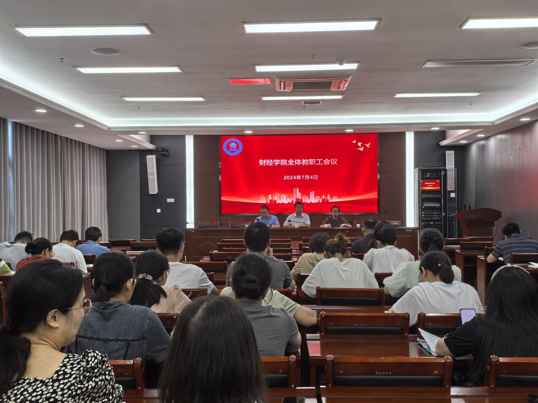 7月4日下午,财经学院在龙湖校区西辅楼111会议室召开全体教职工会议。学院领导班子成员和全体教职工参加会议,会议由学院党委副书记、纪委书记耿广汉主持。