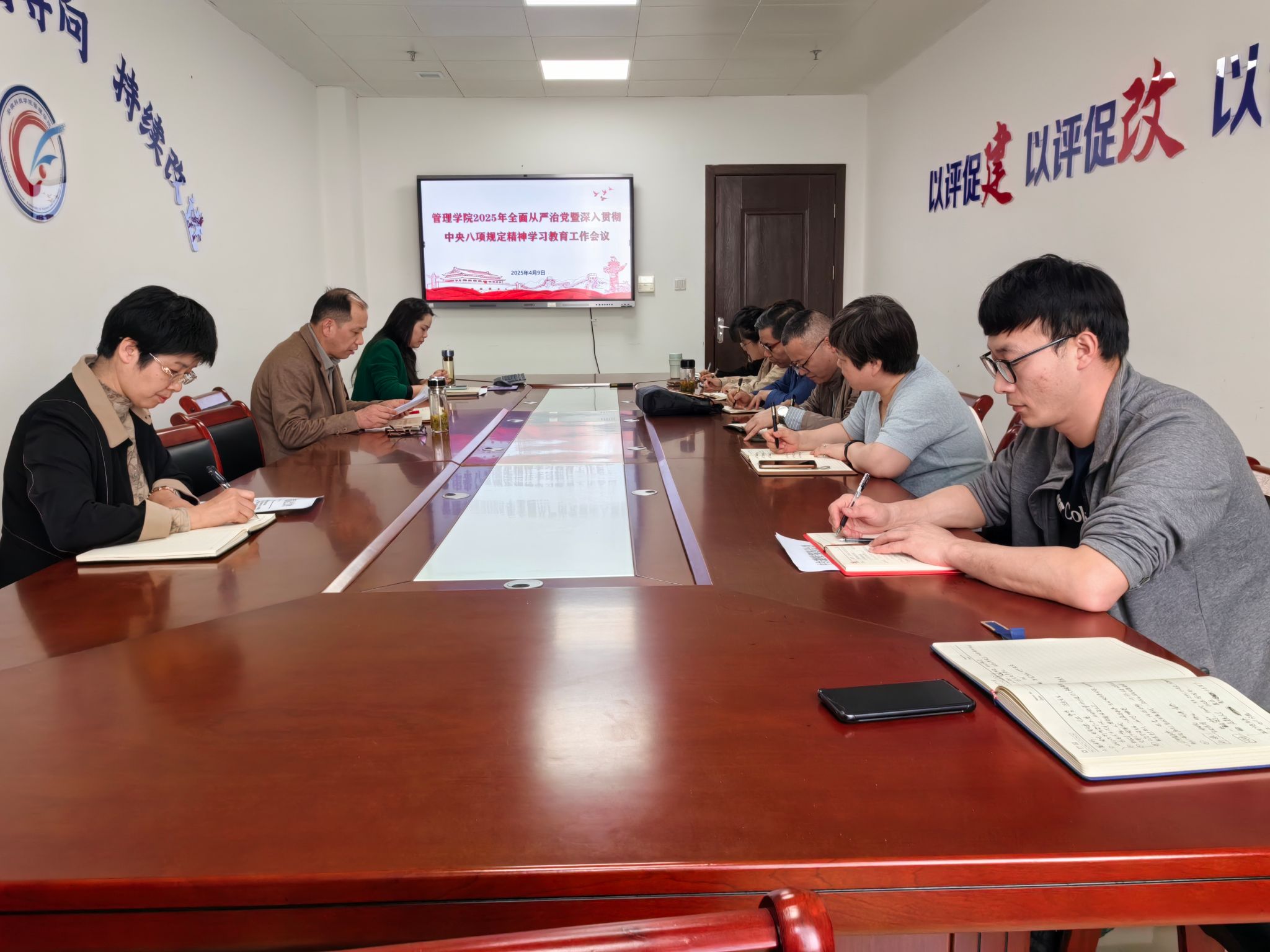 丁景良在部署学院2025年全面从严治党工作和深入贯彻中央八项规定精神学习教育工作时,提出四点要求:一是学深悟透,筑牢思想根基。全体党员干部要明确本次学习教育的重大意义,深刻领悟“两个确立”的决定性意义,坚决做到“两个维护”。二是标本兼治,注重学习实效。要聚焦主题,牢牢把握“学查改”关键环节,做到学有质量、查有力度、改有成效,接受师生监督。三是干字当头,一体有序推进学习教育有效开展。要把学习教育与学院中心工作有机结合起来,防止“两张皮”和“走过场”,助推学院高质量发展。四是以上率下,示范带动,营造学院良好的政治生态和“争先创优”工作氛围。要充分发挥支部战斗堡垒及党员先锋模范作用,力戒形式主义,强化宣传引导,助推学习教育走深走实。
