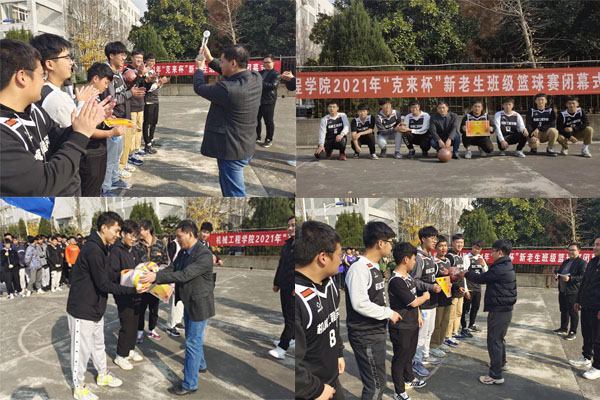 2021年11月29日中午,随着老生组班级决赛终场哨声的响起,历时45天、共有43班级参赛、进行了46场班级对抗比赛的机械工程学院2021年“克来杯”新老生班级篮球赛圆满落幕。学院党委副书记、纪委书记张程,辅导员张立亮、孟凡生、邱杰及全体获奖班级队员等参加闭幕式,闭幕式由孟凡生主持。