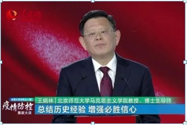 王炳林教授以“总结历史经验,增强必胜信心”为题,重点从中国历史上经历的磨难及当前防疫斗争、中国必将从磨难中奋起的启示进行深入分析,向大学生传递要及时总结历史经验,切实增强疫情防控必胜信心。