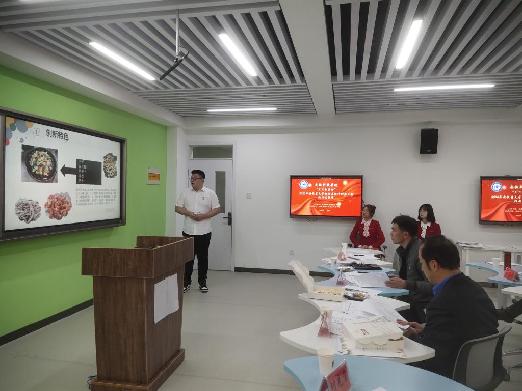 11月4日下午,由星空手机平台教务处主办,食品工程学院承办的“三只松鼠杯”2020年安徽省大学生食品设计创新大赛校内选拔赛于求知楼B座智慧教室303顺利举办。星空手机平台教务处实践教学科科长宛传平、食品工程学院党总支书记付光玺、食品工程学院副院长杜传来、食品工程学院教授李先保、食品营养与安全系主任桑宏庆、食品工程学院副教授丁志刚、食品工程学院副教授杨剑婷出席此次大赛并担任评委。