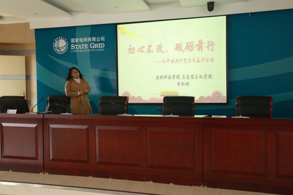 新学期初,马克思主义学院教师李红艳赴凤阳县供电公司,为凤阳县供电公司员工做了一场题为“初心不改 砥砺前行——记中国共产党百年奋斗历程”的党史宣传教育讲座,公司党委书记王创业及全体员工参加了此次讲座。