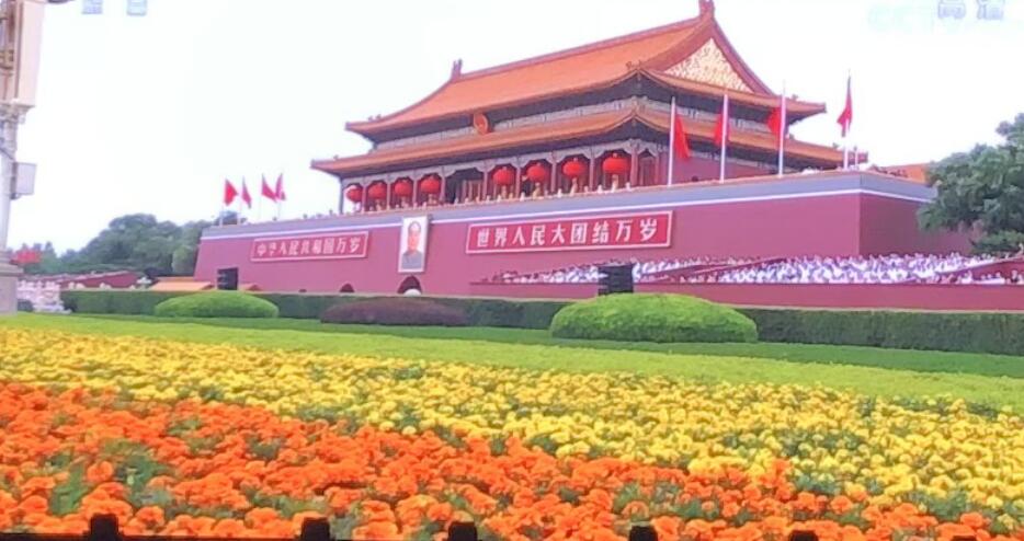 神州大地欣欣向荣、气像万千,首都北京花团锦簇、旌旗飘扬。在伟大的中国共产党领导下,近代以后久经磨难的中华民族迎来了从站起来、富起来到强起来的伟大飞跃, 14亿多中国人民正意气风发走在中国特色社会主义新时代的壮丽征程上。