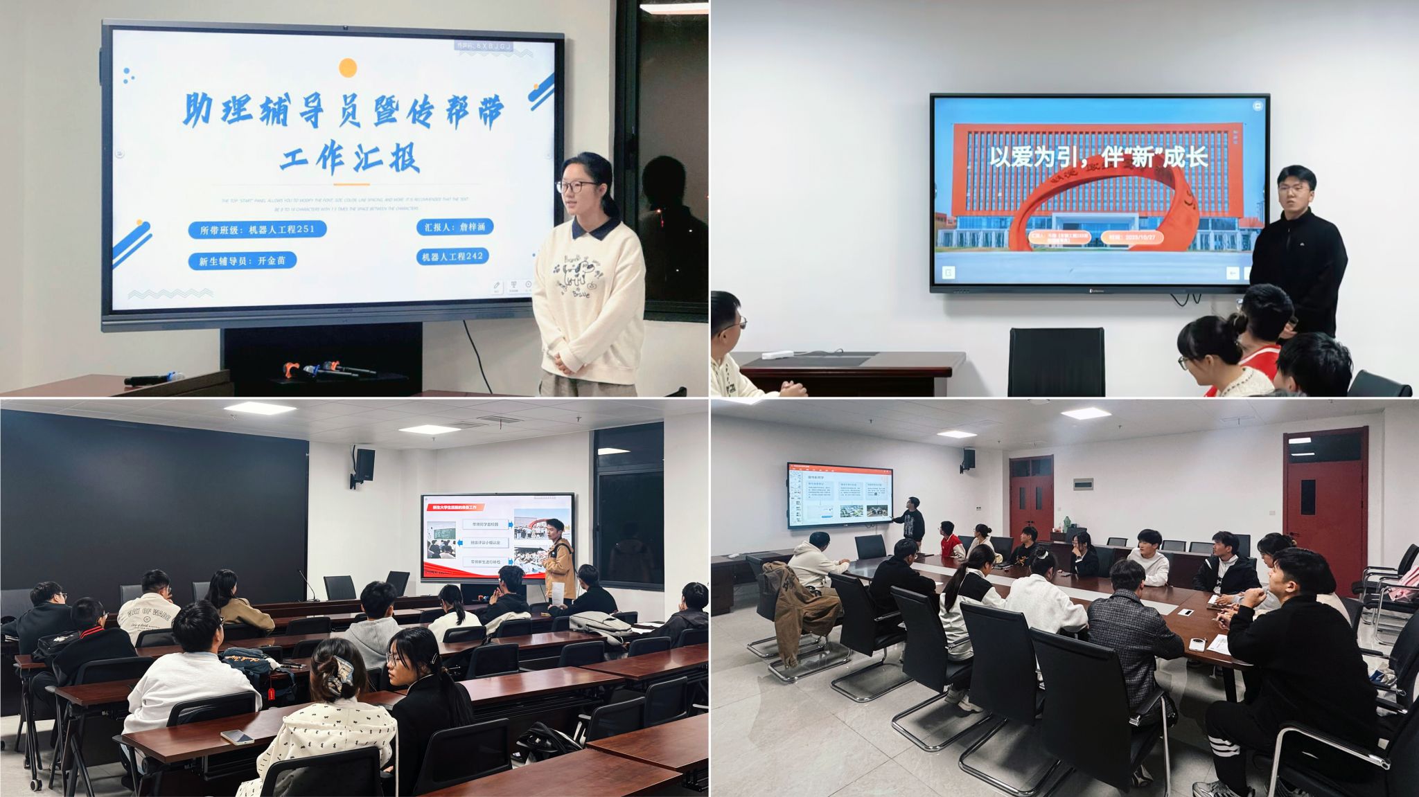 为总结2025级新生入学以来教育辅导工作,优化完善后续工作,提升入学教育成效,10月27日晚,智能制造学院在学院501、518会议室召开2025级新生助理辅导员工作汇报会。27名助理辅导员参加汇报,学院党委副书记张程、6名辅导员老师参加并给予工作评议和指导。