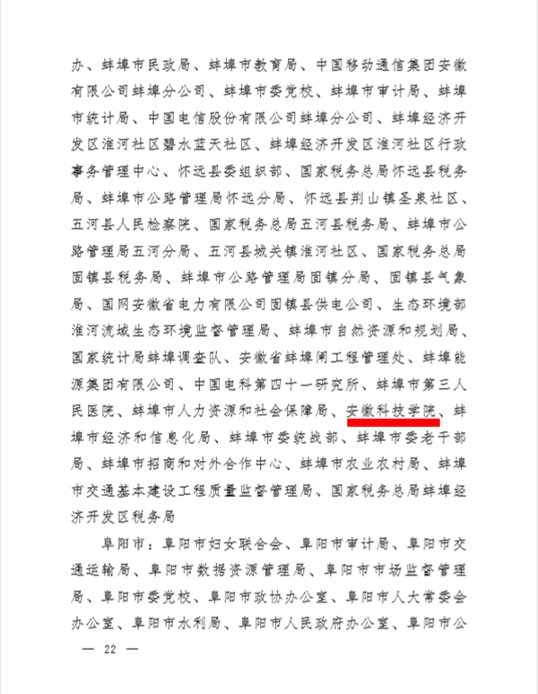自取得安徽省教育系统首届文明单位、第十七届蚌埠市文明单位之后,我校荣获“第十二届安徽省文明单位”称号,使我校精神文明创建工作又跃上了一个新的台阶。这是学校党委、行政高度重视,更是全校各单位(部门)相互配合,师生员工勠力同心,辛勤奉献的结果;也是省级主管部门、地方党委政府及社会各界对我校积极开展文明创建与地方联动的高度认可。