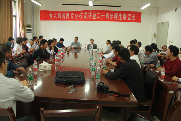 10月2日至3日,来自全国各地的动物科学学院96届兽医专业43位校友,在毕业20周年后母校再聚首。动物科学学院总支书记刘德义、96届兽医专业班主任朱元招、孙德坤老师和部分授课教师应邀参加本次聚会。