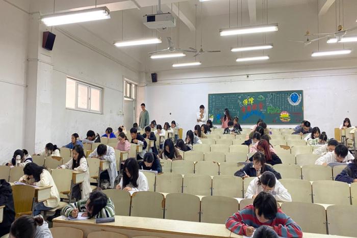 考试为闭卷形式,有选择、填空、判断、简答、论述五种题型,考查范围包括了管理篇、资助篇、奖惩篇、服务篇以及附录等内容,重点为教学管理、公寓管理、奖勤贷补、评奖评优和违纪处分等内容。考场上,各位新生遵守考试规则,认真作答,一丝不苟,考场秩序井然,有条不紊。