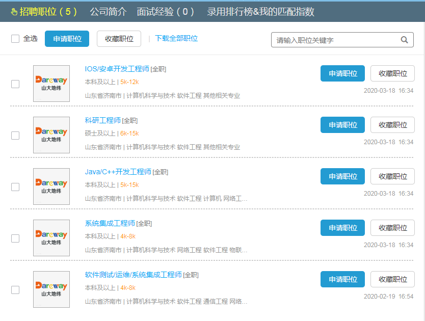 山大地纬软件股份有限公司2020校园招聘